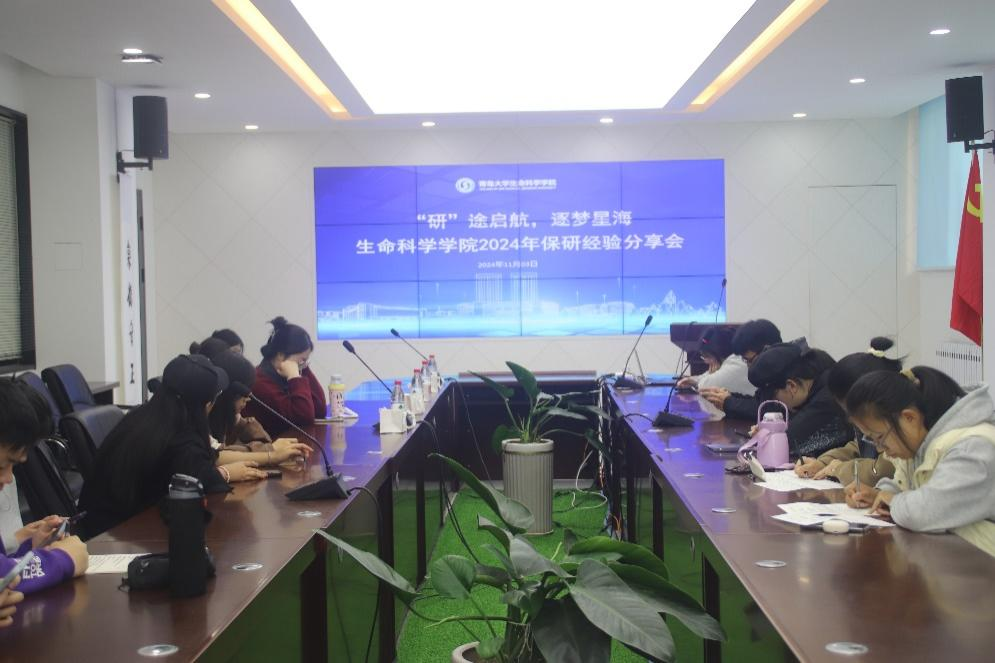 在博雅楼113会议室举办2024年“‘研’途启航,逐梦星海”保研经验分享会。学院2021级各专业保研学生代表王谞、曲奕帆、迟一航、张淑蕾受邀向低年级同学传授经验。