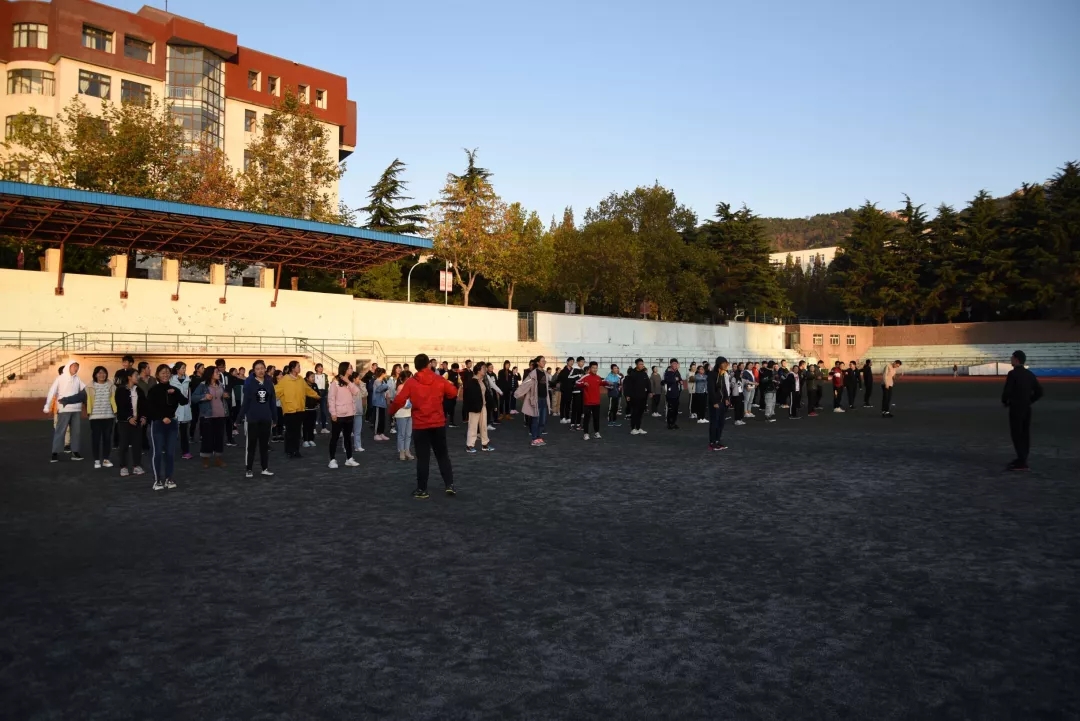 2019级全体同学以班级为单位集合完成。按照惯例在师范学院操场集合,以饱满的热情整装待发,准备进行跑操运动。跑操前,注册送彩金论坛