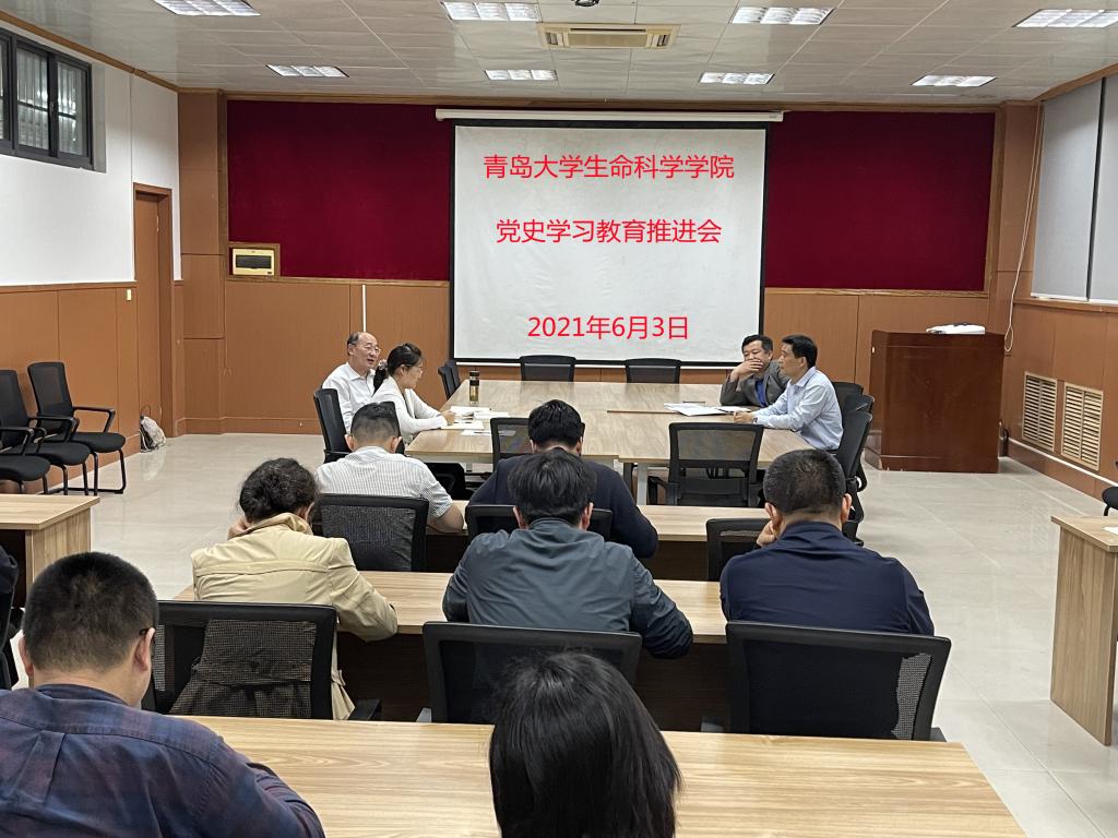 在浮山校区博雅楼103会议室召开党史学习教育推进会,全体教职工党员参加本次会议,会议由学院党委书记薛冰主持。