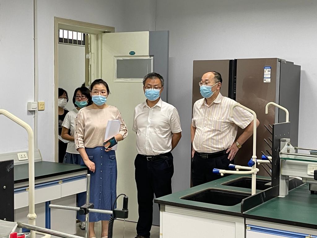 进行2021年秋季学期期初实验室安全检查,学院党委书记薛冰、院长许元红、相关职能部门负责人陪同检查。