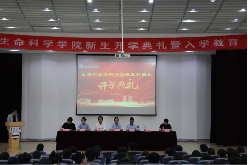 党委书记孙建华、党委副书记张雪蕾、副院长孙海新、院长助理丁晓腾、2002级生物技术专业优秀校友常云松及2024级新生班主任出席会议,2024级全体本科新生参与会议,会议由张雪蕾主持。
